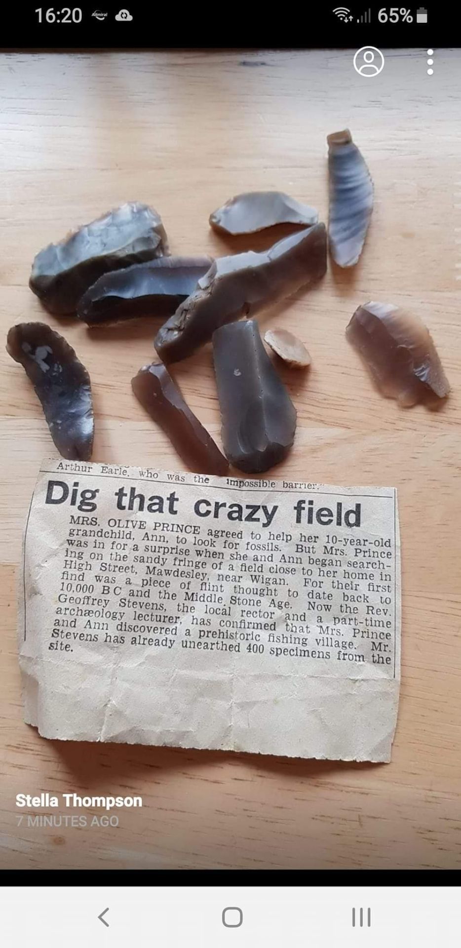 Stuart Jamieson has suggested that we put together a Project recording and cataloguing archaeological finds from Mawdesley . This would start with flints found in Mawdesley :-