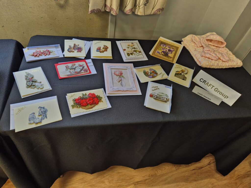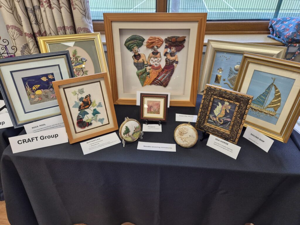 We do a variety of crafts – knitting, cross stitch, embroidery, card making etc.